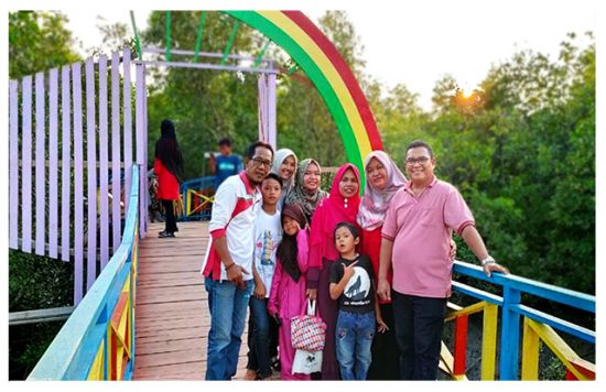 The power of Emak-emak zaman now tak mau ketinggalan dengan yang masih muda-mudi, foto kategori emak-emak yang ditutup dengan foto bareng keluarga kali ini menjadi momen bahagia untuk melepaskan sejenak kesibukan urusan keseharian di rumah tangga. So, untuk yang muda-mudi jangan mau kalah dan ketinggalan, pastikan pose dan view spot foto dengan sudut kamera yang pas untuk diabadikan di wisata mangrove Jembatan Pelangi.