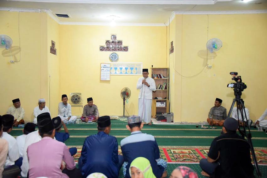 Saling berjabat tangan Wakil Ketua DPRD bersama jamaah Masjid Mushola usai sholat tarawih bersama