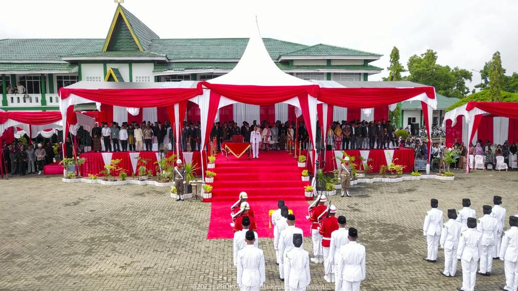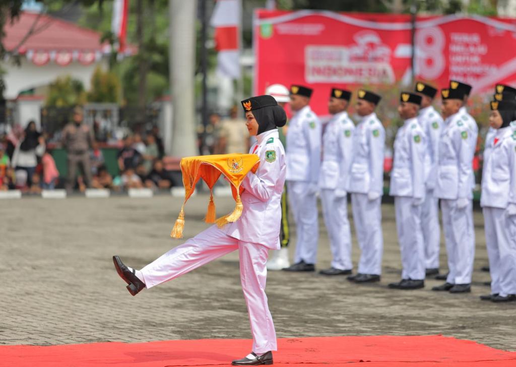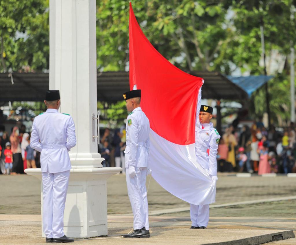 MERANTI – Pelaksana tugas (Plt) Bupati Kepulauan Meranti AKBP (Purn) menjadi inspektur upacara peringatan HUT ke-78 RI di Halaman Kantor Bupati, Selatpanjang, Kamis (17/8/2023).