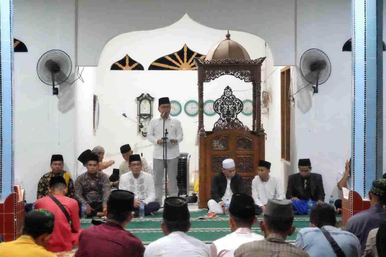 Pelaksana tugas (Plt) Bupati Kepulauan Meranti AKBP ( purn ) H. Asmar melakukan safari ramadan 1444 H bersama masyarakat di Masjid Darunnaim Desa Penyagun Kecamatan Rangsang, Sabtu (15/4/2023).