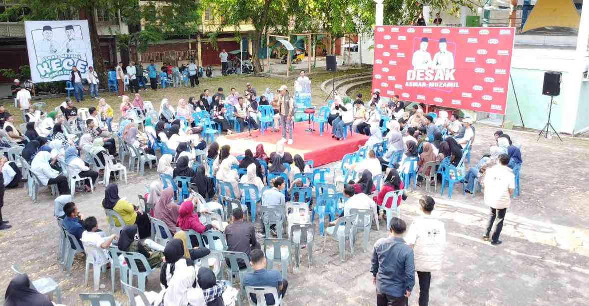 Disela melaksanakan kampanye terbuka di kecamatan Tebing Tinggi barat, Calon Bupati Asmar menyempatkan waktu untuk hadir duduk dan berdiskusi bersama Gen Z dan Millenial. Dalam acara yang dihadiri oleh anak muda sebagai generasi penerus, Asmar menyampaikan salam dari calon wakil Bupati Meranti, Muzamil yang saat ini masih berada di lokasi kampanye desa Alai kecamatan Tebing tinggi barat.