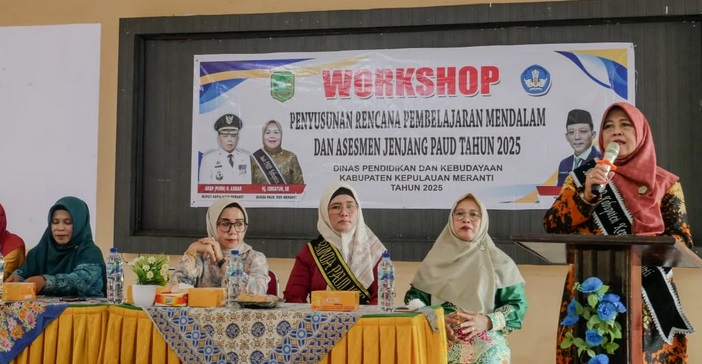 MERANTI, SINKAP.info – Bunda Pendidikan Anak Usia Dini (PAUD) Kabupaten Kepulauan Meranti sekaligus Ketua PD Himpaudi, Hj. Ismiatun, SE, secara resmi membuka Workshop Penyusunan Rencana Pembelajaran Mendalam dan Asesmen menjelang tahun ajaran PAUD 2025. Kegiatan tersebut berlangsung di Aula SMK Negeri 1 Tebingtinggi, Selatpanjang, Jumat (19/9/2025).