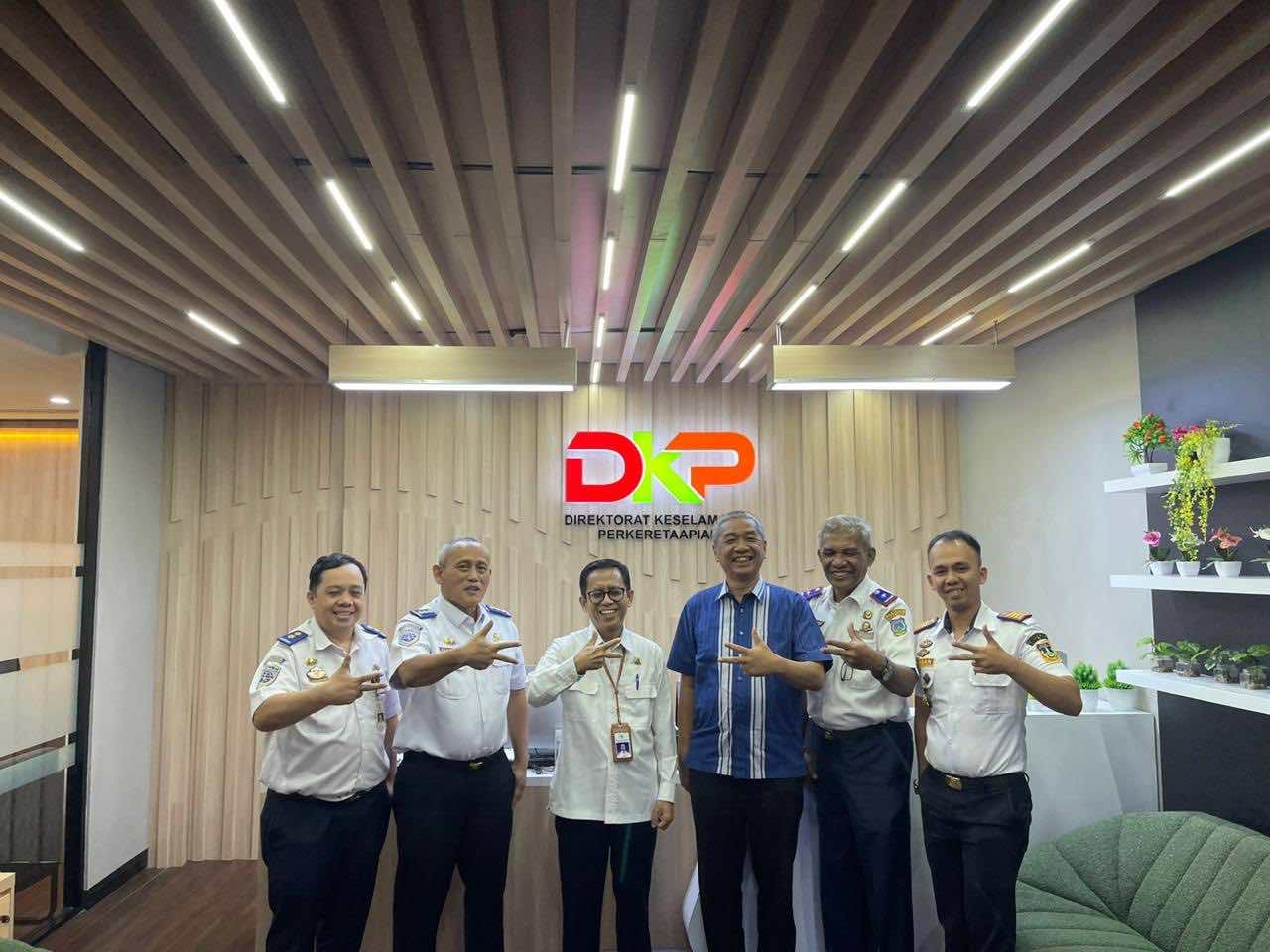 Audiensi diterima langsung oleh Direktur Keselamatan Perkeretaapian Jumardi di lingkungan Direktorat Jenderal Perkeretaapian, bersama Kasubdit Rekayasa dan Peningkatan Keselamatan Danan Widhonarko serta Inspektur Prasarana Perkeretaapian Yayat Hendayana.