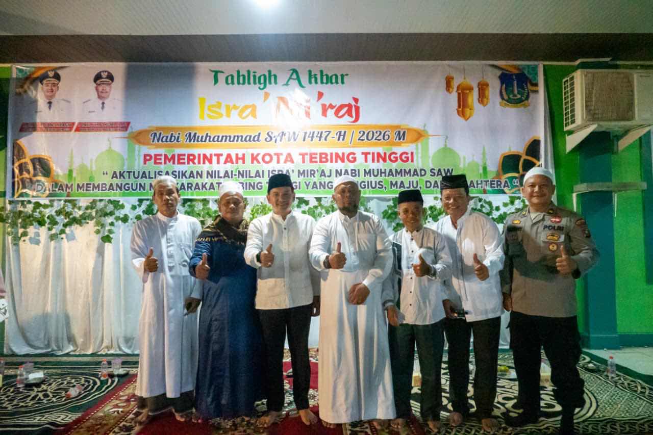 TEBING TINGGI, SINKAP.info – Wali Kota Tebing Tinggi, H. Iman Irdian Saragih, mengajak seluruh elemen masyarakat untuk terus menjaga kondusivitas daerah serta mempererat ukhuwah Islamiyah. Ajakan tersebut disampaikannya saat menghadiri Tabligh Akbar Peringatan Isra Miraj Nabi Muhammad SAW 1447 Hijriah yang digelar Pemerintah Kota (Pemko) Tebing Tinggi di Masjid Al Jihad, Jalan Setia Budi, Kelurahan Brohol, Jumat malam (30/01/2026).