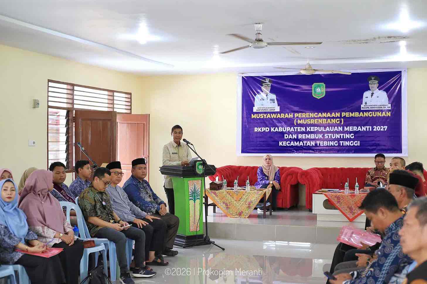Bupati Kepulauan Meranti melalui Sekretaris Daerah Sudandri Jauzah, saat membuka Musrenbang RKPD 2027 yang dirangkaikan dengan Rembuk Stunting Kecamatan di Aula Kantor Camat Tebingtinggi, Kamis (12/2/2026), menegaskan perlunya perubahan pendekatan dalam perencanaan pembangunan.