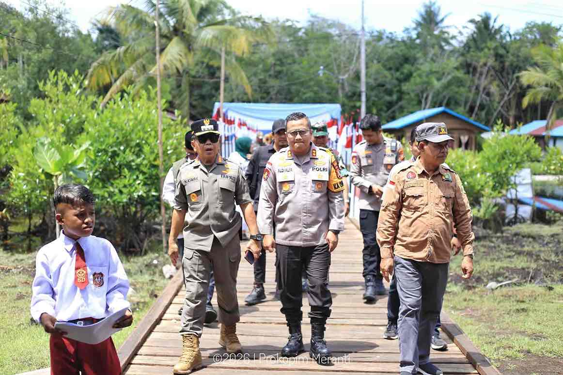 MERANTI, SINKAP.info – Pemerintah Kabupaten Kepulauan Meranti bersama unsur Forkopimda menghadiri peresmian Jembatan Merah Putih Presisi di SDN 018 Dusun Semulut, Desa Banglas Barat, Kecamatan Tebingtinggi, Selasa (17/3/2026).