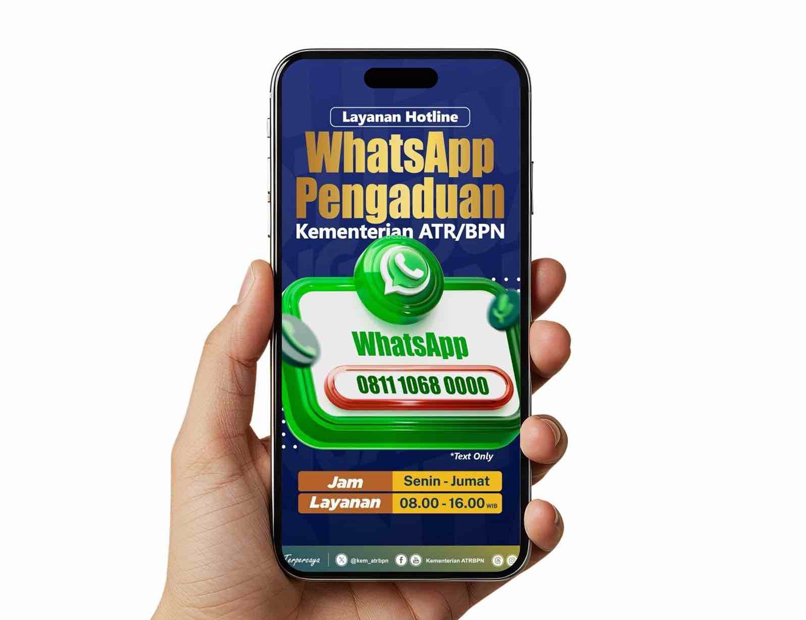 Saat ini, ATR/BPN menyediakan empat kanal resmi pengaduan yang dapat diakses masyarakat, yakni layanan WhatsApp Pengaduan di 0811-1068-0000, email resmi surat@atrbpn.go.id, loket persuratan di kantor pusat, serta platform nasional SP4N-LAPOR!.