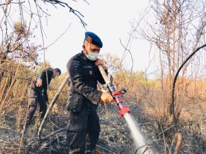 Kapolres Dumai Beserta Mahasiswa Bahu Membahu Memadamkan Karhutla